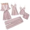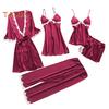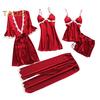 Material: This 5-piece pajama set is crafted from luxurious polyester fabric, ensuring a soft and comfortable feel against the skin while maintaining durability for long-lasting wear.