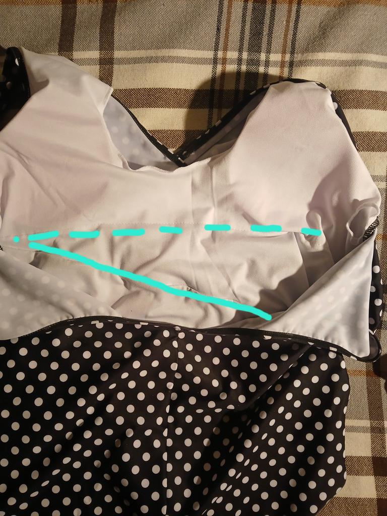 Probably got the size wrong (took 3XL for 56), could have taken one size smaller, but even in a smaller one, it would be the same with the bust - it doesn't hold at all. The seam under the bust on the lining doesn't provide anything at all, and on the swimsuit, the seam goes diagonally downwards, so the bust can somehow be arranged where it (the seam) is at the top, but the other one is a disaster(