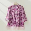 Summer Artistic Loose Floral Print Blouse Ladies Patchwork V-neck Short Sleeve Shirt Women's Vintage Top