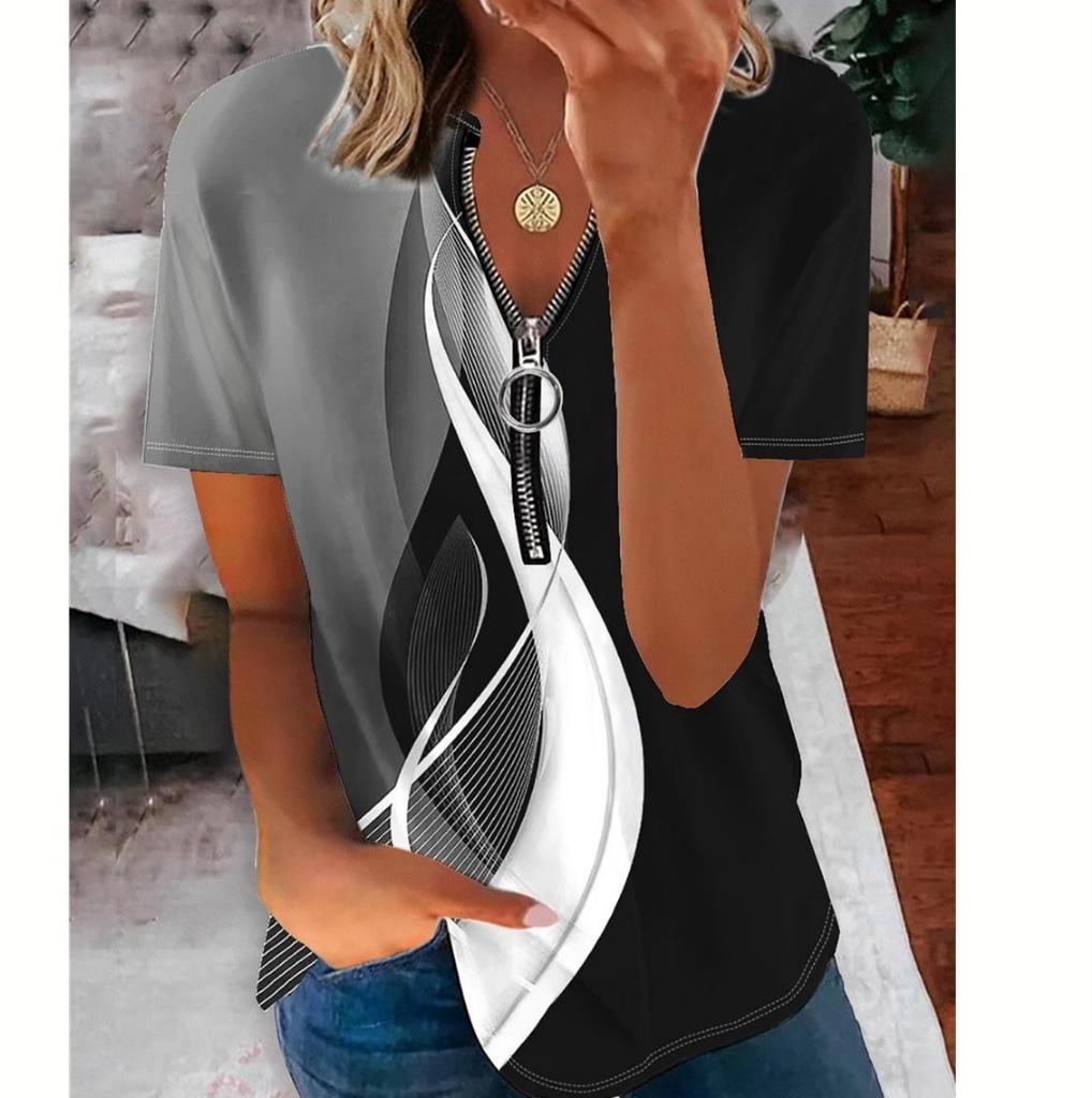 Women's Summer Fashion Zipper Short Sleeve Plus Size T-shirt