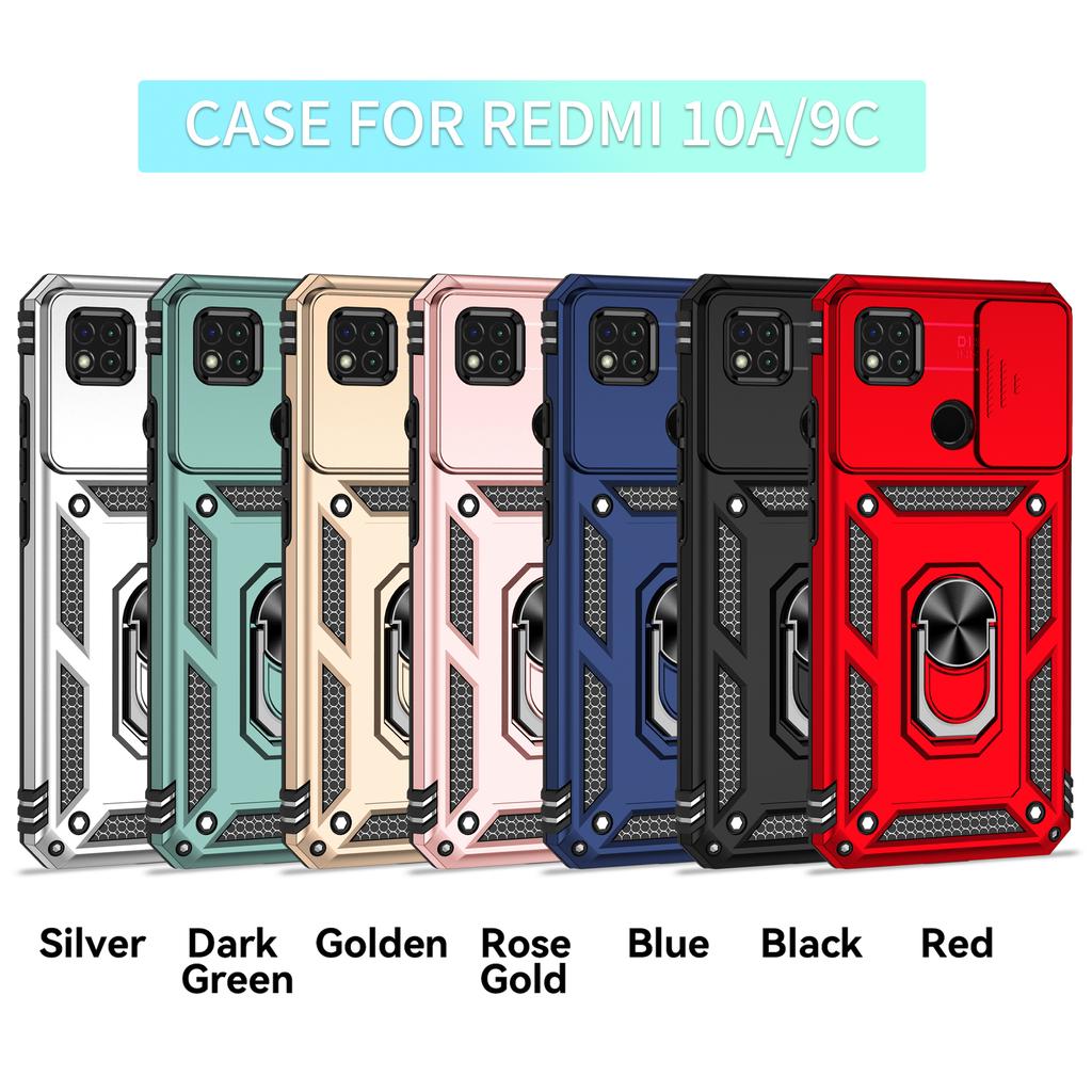 For Xiaomi Redmi 10A Redmi 9C Armor Phone Case Camera Lens Protection Metal Ring Stand Shockproof Case