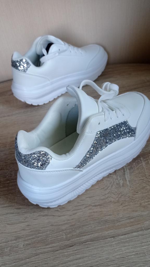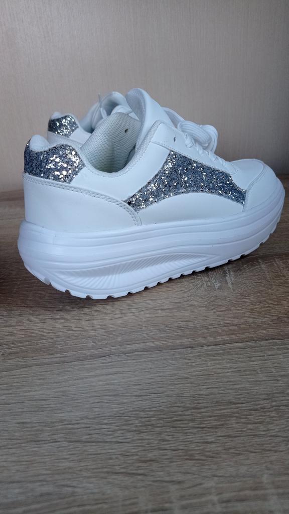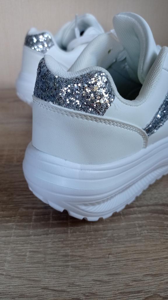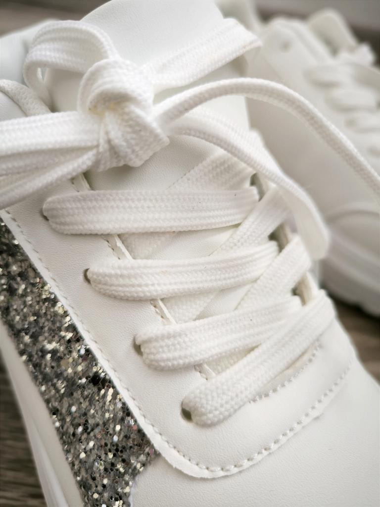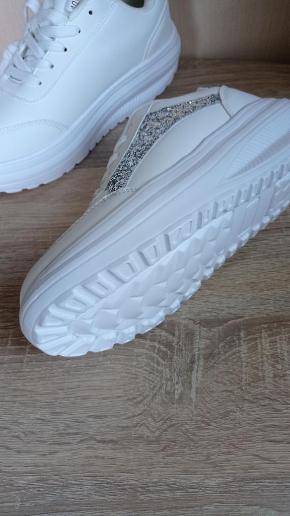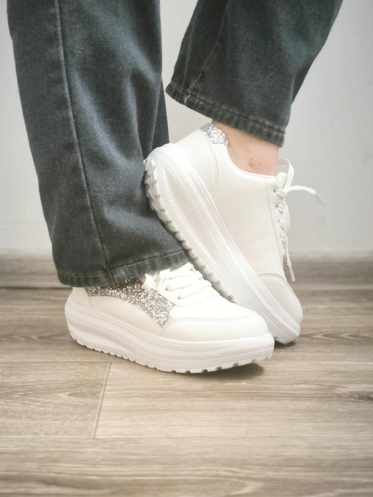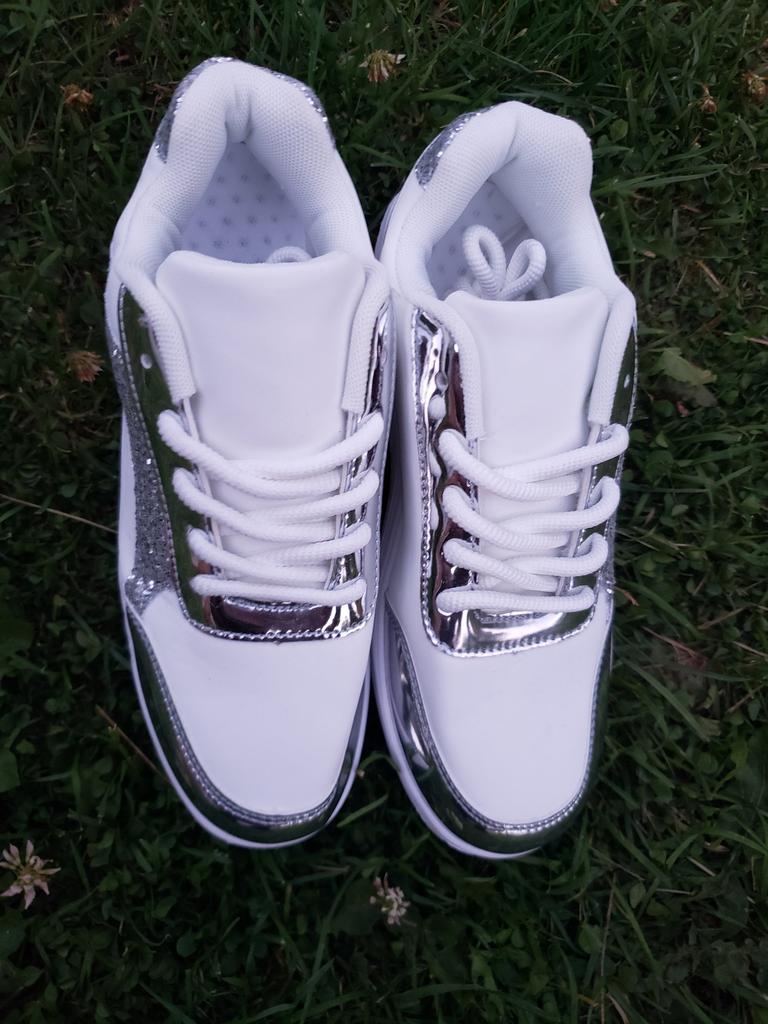 I love my new white sneakers with silver details. They are the most comfortable shoes I have had in a long time. The white and silver design is super elegant and combines perfectly with any outfit, whether casual or more dressed up.. The comfort they offer is incredible. The sole is cushioned and feels like you are walking on clouds. Furthermore, the material is of excellent quality and fits my foot perfectly, providing optimal support.. The silver details give a touch of sophistication and style to the sneakers. Without a doubt, they are the ideal complement to give a touch of shine to any outfit. I love them and I can't stop using them!