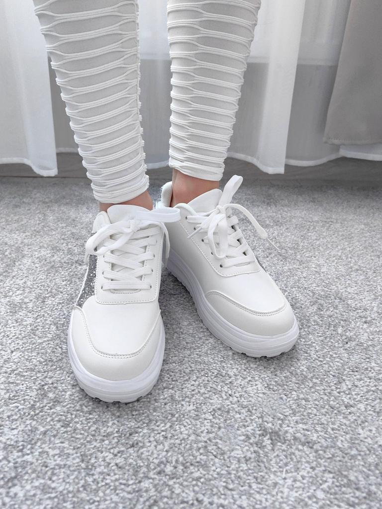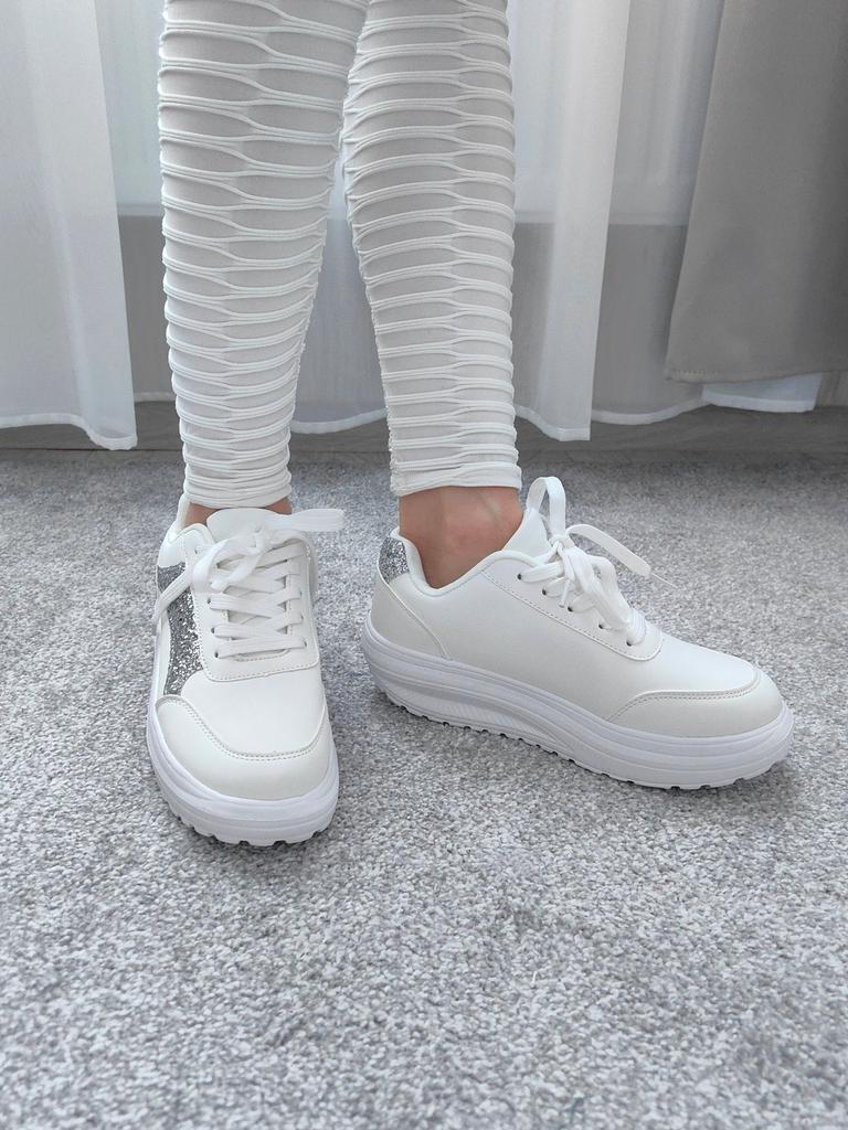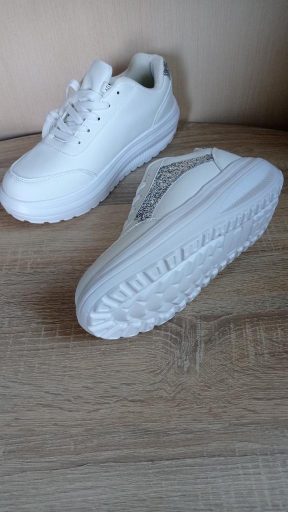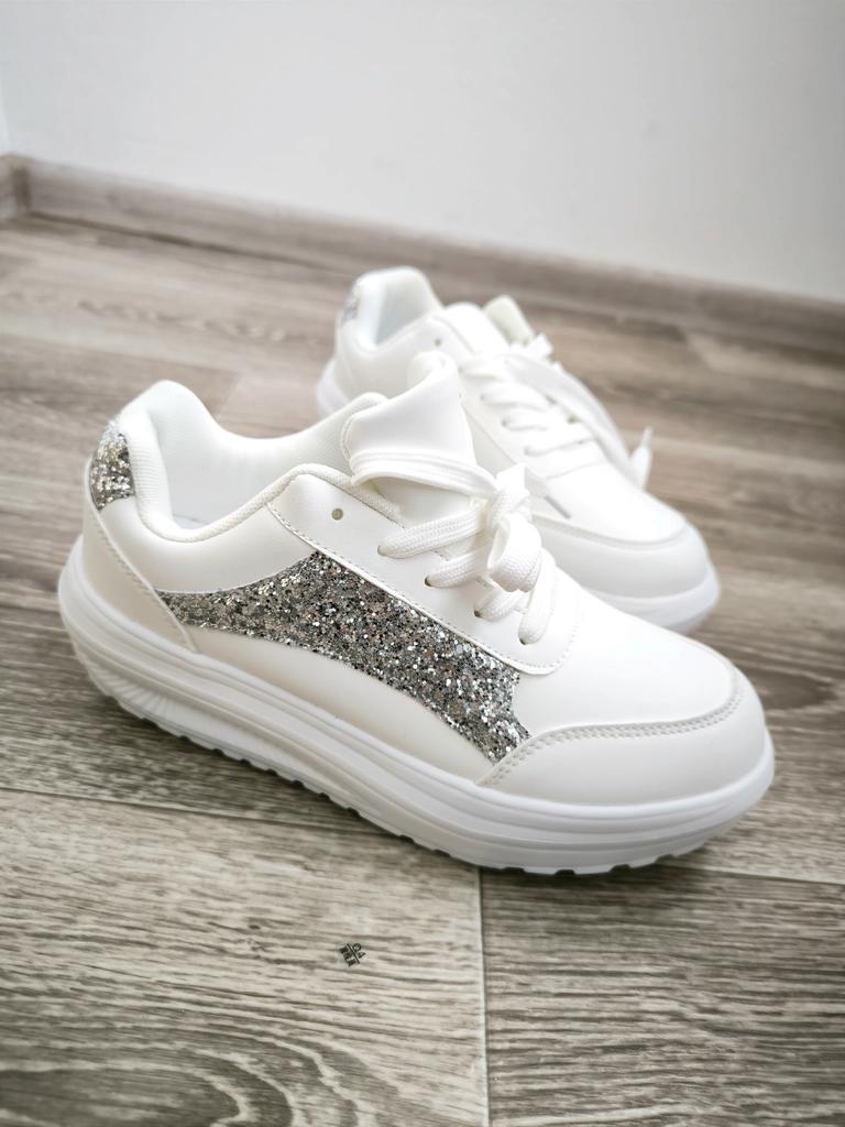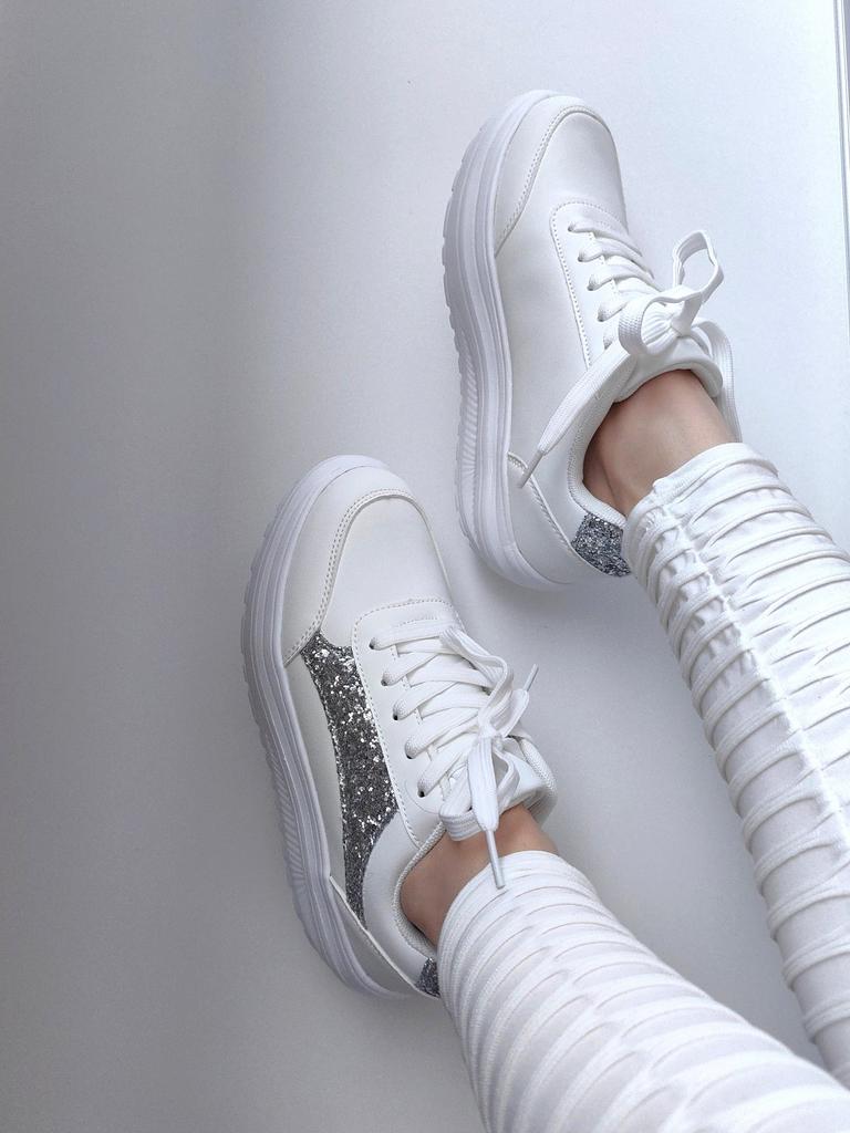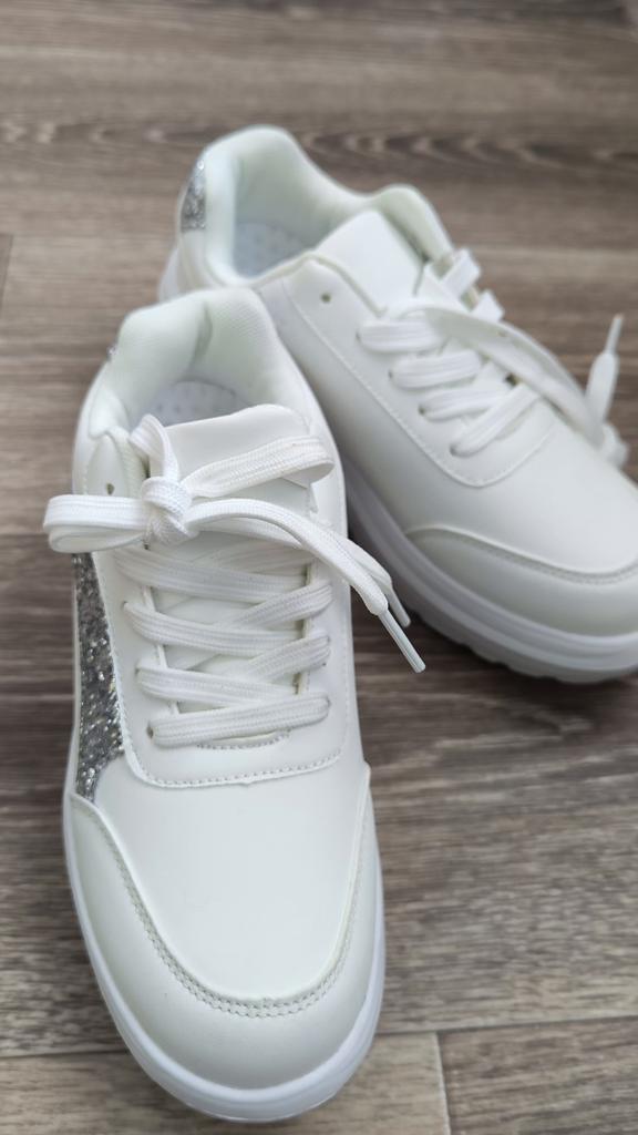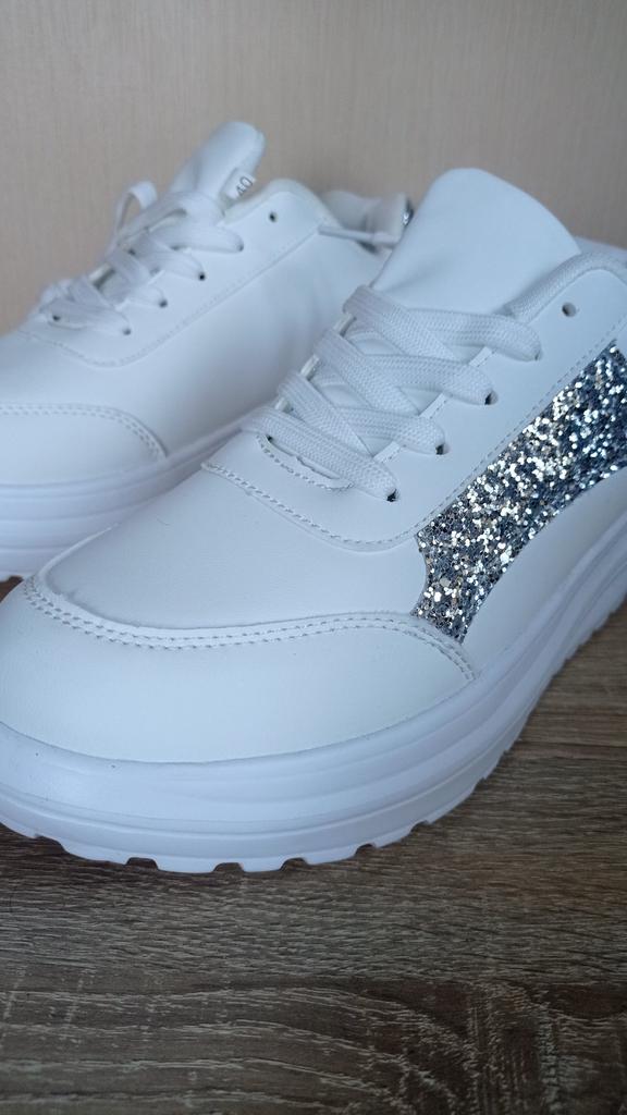 I love my new white sneakers with silver details. They are the most comfortable shoes I have had in a long time. The white and silver design is super elegant and combines perfectly with any outfit, whether casual or more dressed up.. The comfort they offer is incredible. The sole is cushioned and feels like you are walking on clouds. Furthermore, the material is of excellent quality and fits my foot perfectly, providing optimal support.. The silver details give a touch of sophistication and style to the sneakers. Without a doubt, they are the ideal complement to give a touch of shine to any outfit. I love them and I can't stop using them!