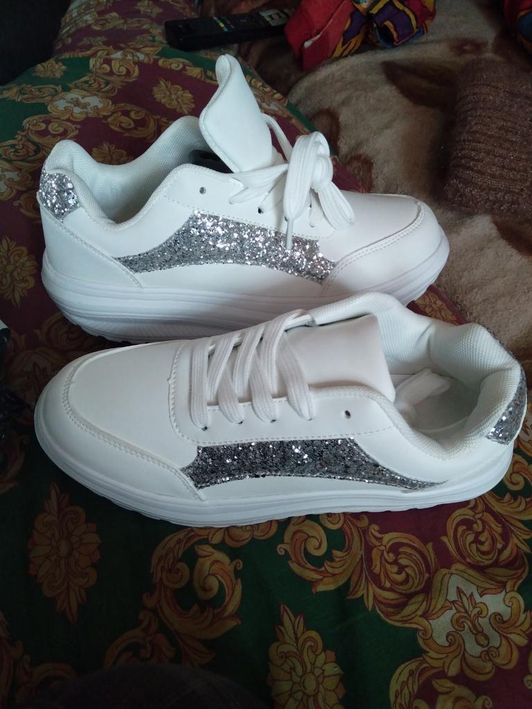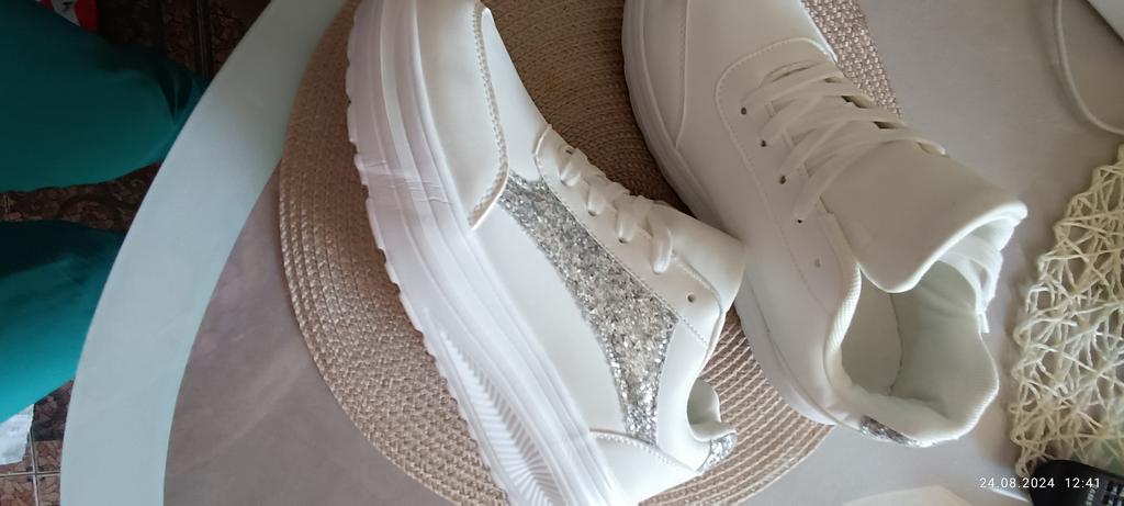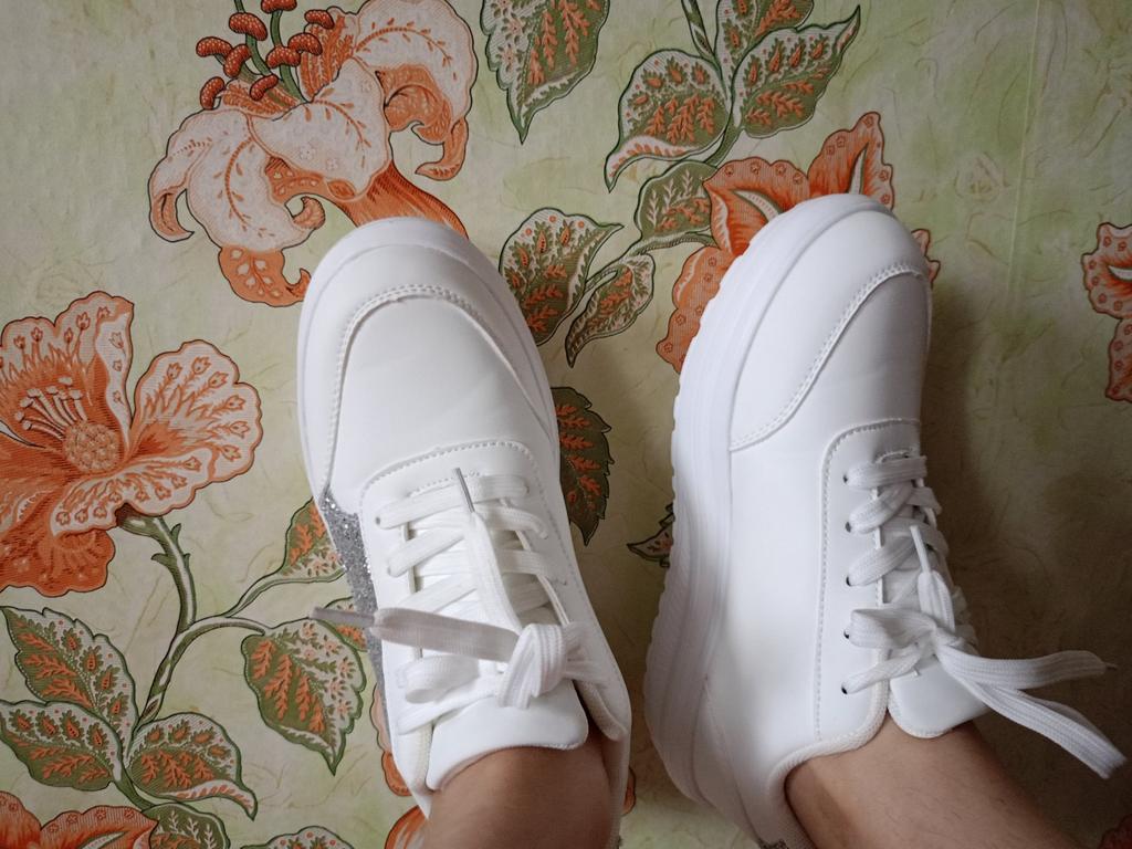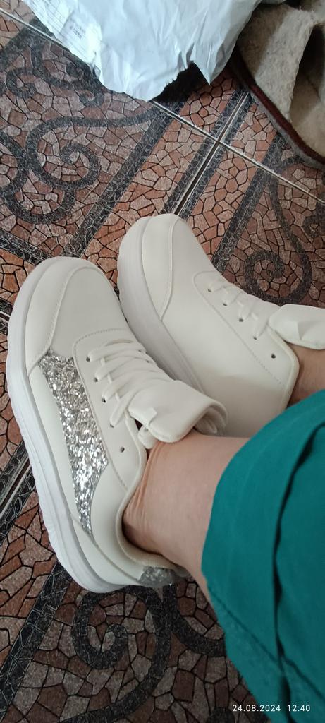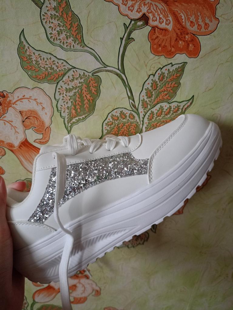 ๐ I received the white sneakers with integrated silver glitter after three weeks of delivery, well packaged and consolidated in Austria. ๐ The shoes have a platform sole and shoelaces to adjust them well to the foot, furthermore they are as light as a feather and you feel absolute comfort. ๐ A dreamy shoe model that is available in a variety of sizes and turns every foot into an eye-catcher. The sneakers can be perfectly combined with various trousers and skirts and thanks to the size chart the shoes fit perfectly. ๐๐๐ฏ๐ I would highly recommend this model! Music by Capcut pro