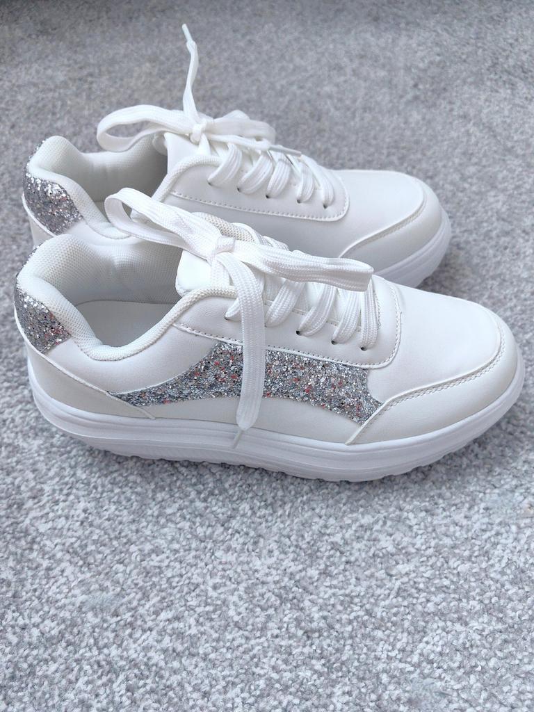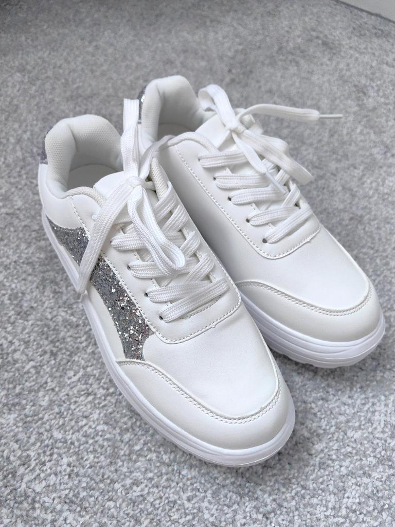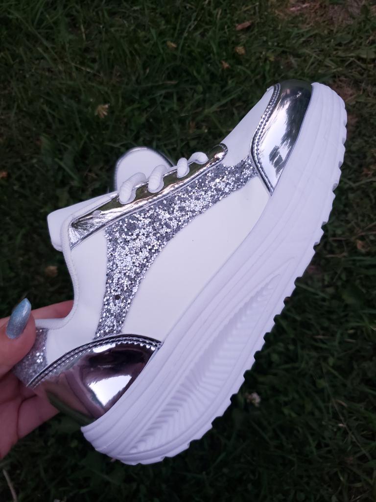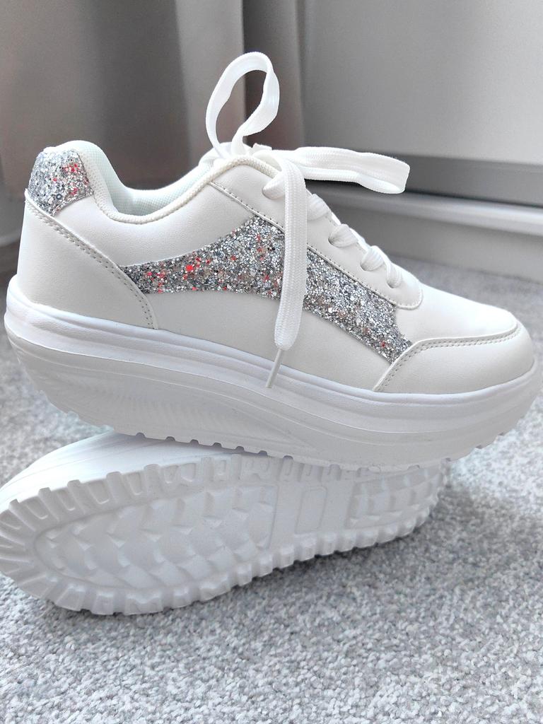 ๐ I received the white sneakers with integrated silver glitter after three weeks of delivery, well packaged and consolidated in Austria. ๐ The shoes have a platform sole and shoelaces to adjust them well to the foot, furthermore they are as light as a feather and you feel absolute comfort. ๐ A dreamy shoe model that is available in a variety of sizes and turns every foot into an eye-catcher. The sneakers can be perfectly combined with various trousers and skirts and thanks to the size chart the shoes fit perfectly. ๐๐๐ฏ๐ I would highly recommend this model! Music by Capcut pro