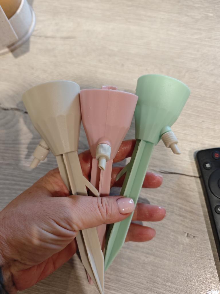 Cute water drippers. Ideal for tropical plants. A small lemonade bottle with a regular opening already fits on it.