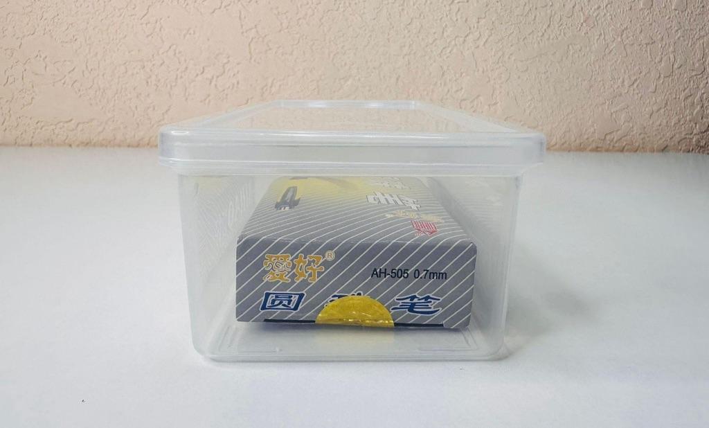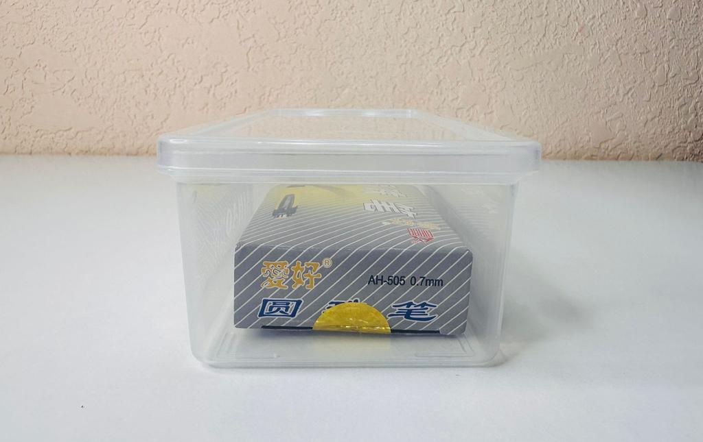 A regular plastic container, convenient for storing pens, pencils