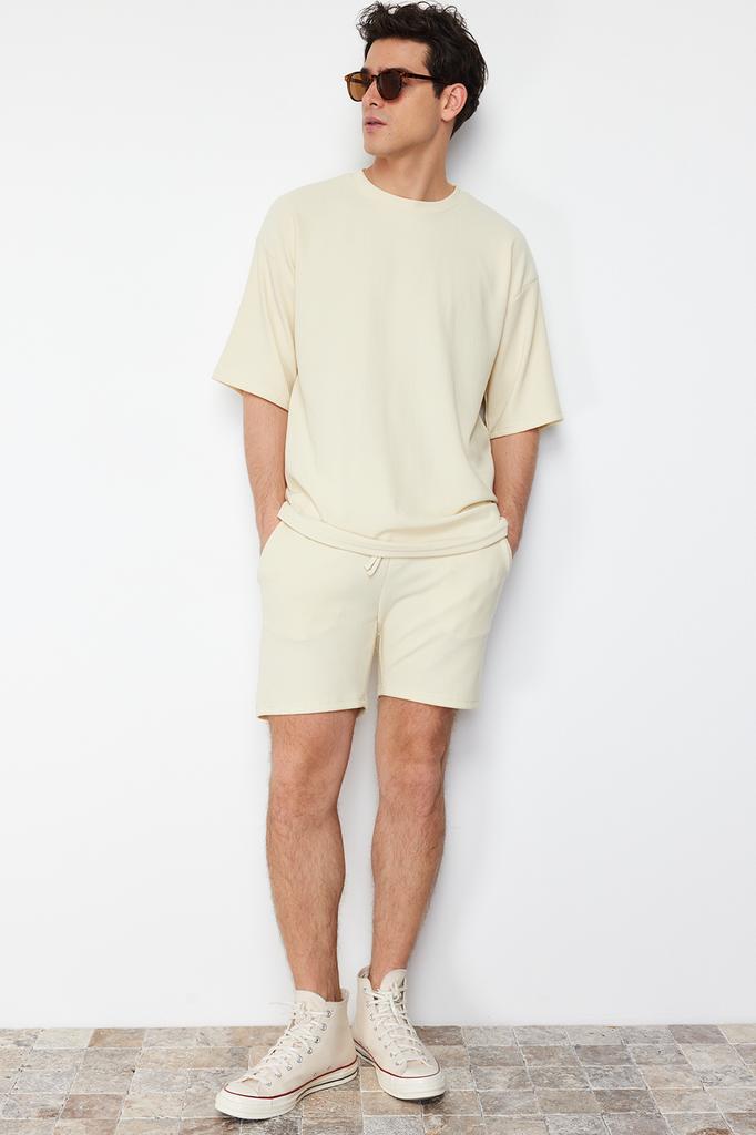 Women's Shorts & Bermuda Fashion New Season Ecru Regular Normal Cut Medium Length Textured Wrinkle-Free Shorts