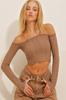 Alaçatı Style Detailed Long Sleeve Patterned Crop Knitted Blouse with Rope Straps, with its close-fitting fit, elastic strap design, and comfortable fabric, is a candidate to become your indispensable wear. You can create tasteful combinations with wide-leg trousers and mom jeans.