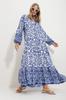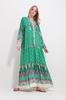 It is ready to be the most trendy dress of recent times, designed for comfort-loving women, with its dominant neckline model, comfortable relax fit pattern, and stylish patterned design. It is a candidate to be an indispensable part of your basic and formal combinations. Alaçatı style dominant neckline paisley patterned maxi dress that you can complete with both your classic and sandals is here! !!.