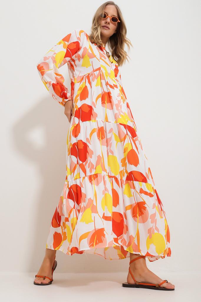 Women's Hijab Dress New Season Fashion Orange Judge Collar Paisley Patterned Maxi Dress