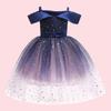 Toddler Girls Cold Shoulder Galaxy Mesh Party Dress Casual Dresses Kids Princess Pageant Gown Christmas Party Paillette Wedding Dress