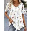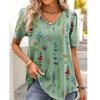 Vintage Women Geometric Painted T-Shirt Casual Short Sleeve V-Neck Women's Top