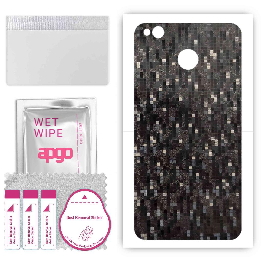 apgo Protective Skin Sticker for the Back Compatible with Xiaomi Redmi 4 (4X), Wrap Film, Foil, Vinyl - Pattern Carbon Black Pixel