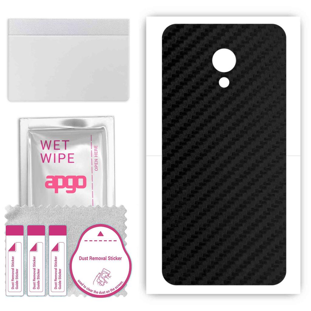 apgo Protective Skin Sticker for the Back Compatible with Meizu M3, Wrap Film, Foil, Vinyl - Pattern Carbon Black