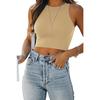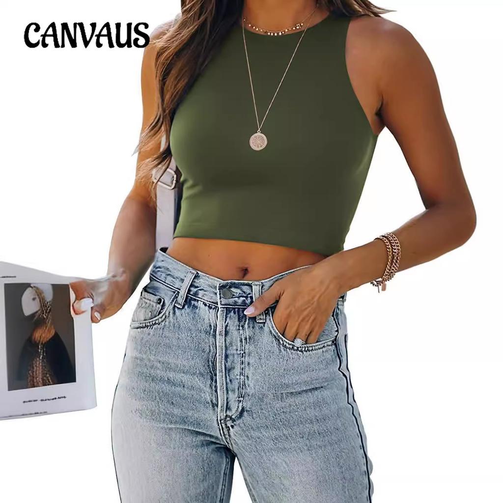 Summer Women's Vest Solid Colour Sleeveless Round Neck Work Vest Top