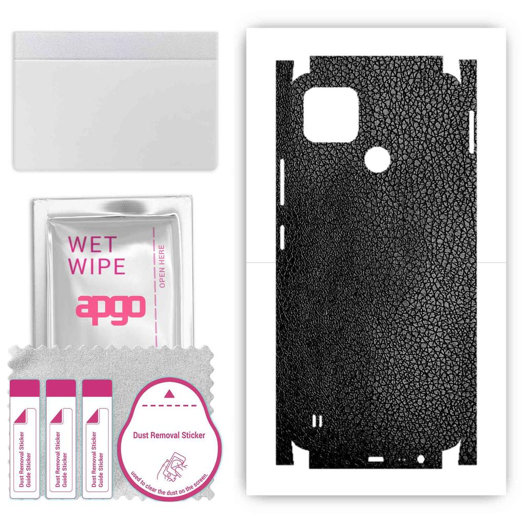 apgo Protective Skin Sticker for the Back+sides Compatible with Realme C25Y, Full Wrap Film, Foil, Vinyl - Pattern Black Leather