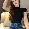 WTEMPO Women Short-sleeved T-shirt Half Turtleneck Summer Trend All-match Top Sexy Slim T-shirt Solid Color Y2k Top Drop Shipping