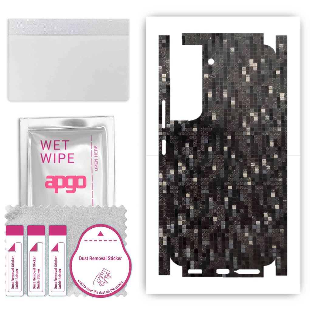 apgo Protective Skin Sticker for the Back+sides Compatible with Samsung Galaxy S22, Full Wrap Film, Foil, Vinyl - Pattern Carbon Black Pixel