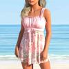 Women's Shoulder Strap Swimsuit Blue Light Color Scheme Print Bikini Tankini Swimsuit