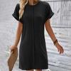 Spring and Summer Women's Fashion Round Neck Solid Colour Short Sleeve Loose Dresses