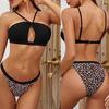 Women's Cutout Bandeau Bikini Set Print Low Waisted Bottom 2 Piece Neck Split Swimsuit