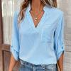 Fashion Spring Summer Half Sleeve V Neck Women Striped Single Pocket Pullovers Shirt Blouse Top