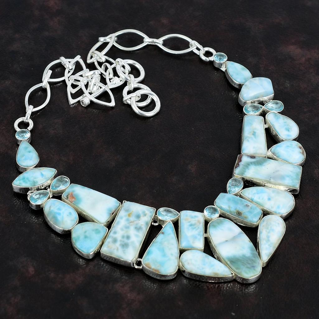 Larimar Gemstone Handmade 925 Sterling Silver Jewelry Necklace 18" AMN-648H