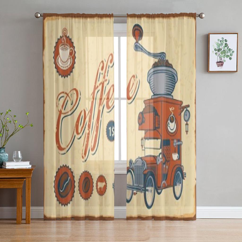 Vintage Car With Coffee Grinder On Roof Sheer Curtains for Living Room Tulle Window Curtain Bedroom Kitchen Veil Drapes