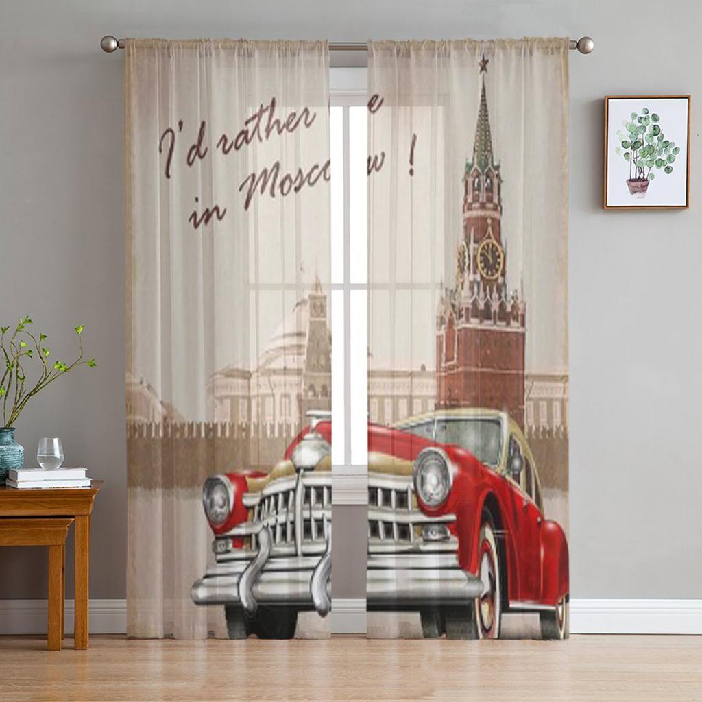 Moscow Vintage Poster Tulle Sheer Window Curtains For Living Room The Bedroom Modern Chiffon Voile Organza Curtains Decor Drapes