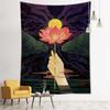 Bergamot Lotus Tapestry Wall Hanging Oil Painting Illustration Bohemian Style Aesthetics Room Home Decor
