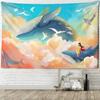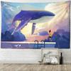 Japanese Whale Illustration Tapestry Wall Hanging Girl Sea Dragon Fish Bohemian Hippie Kawaii Carpet Children's Room Decor