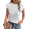 Crew Neck Short Sleeve for Women Summer Pleated Print Solid Short Sleeve Casual Fashion T-shirt Breathable Lightweight Comfortable Work Vacation Top