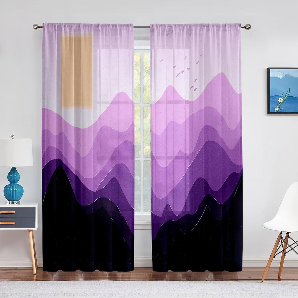 Purple Mountains Abstract Minimalist Landscape Sheer Voile Curtains for Living Room Curtains for Bedroom Chiffon Tulle Curtain
