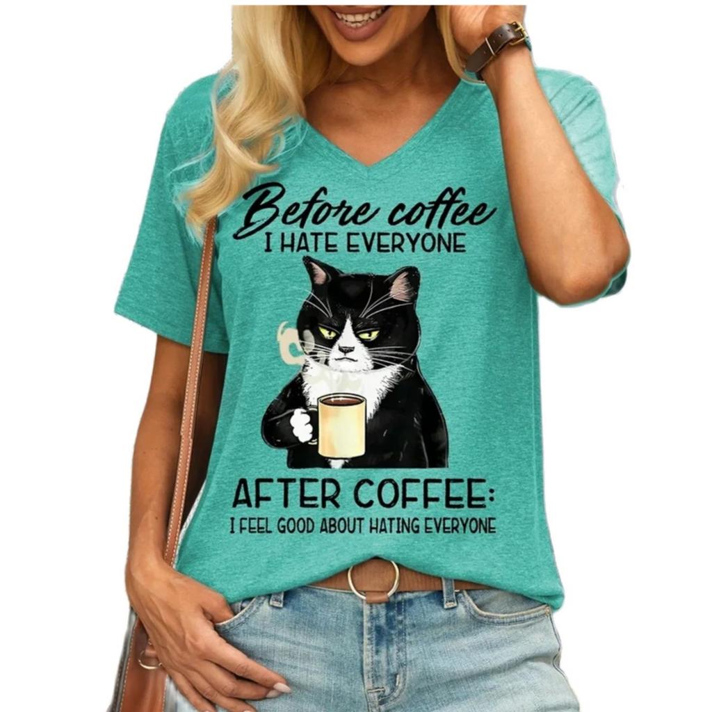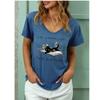 TShirt Women Summer Cute Cat Print V-Neck Sexy Polyester Harajuku Casual Pullover Cartoon Animals Female Streetwear Ladies Tops
