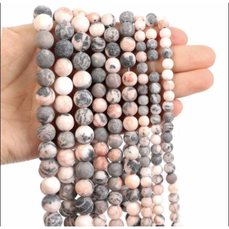Fashion Natural Stone Frosted Pink Zebra Jasper Charm Loose Bead DIY Round Beads Jewelry Accessories