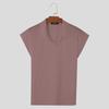 INCERUN Men Stand Collar V Neck Short Sleeve T-Shirts Pinstripe Summer Tee Tops