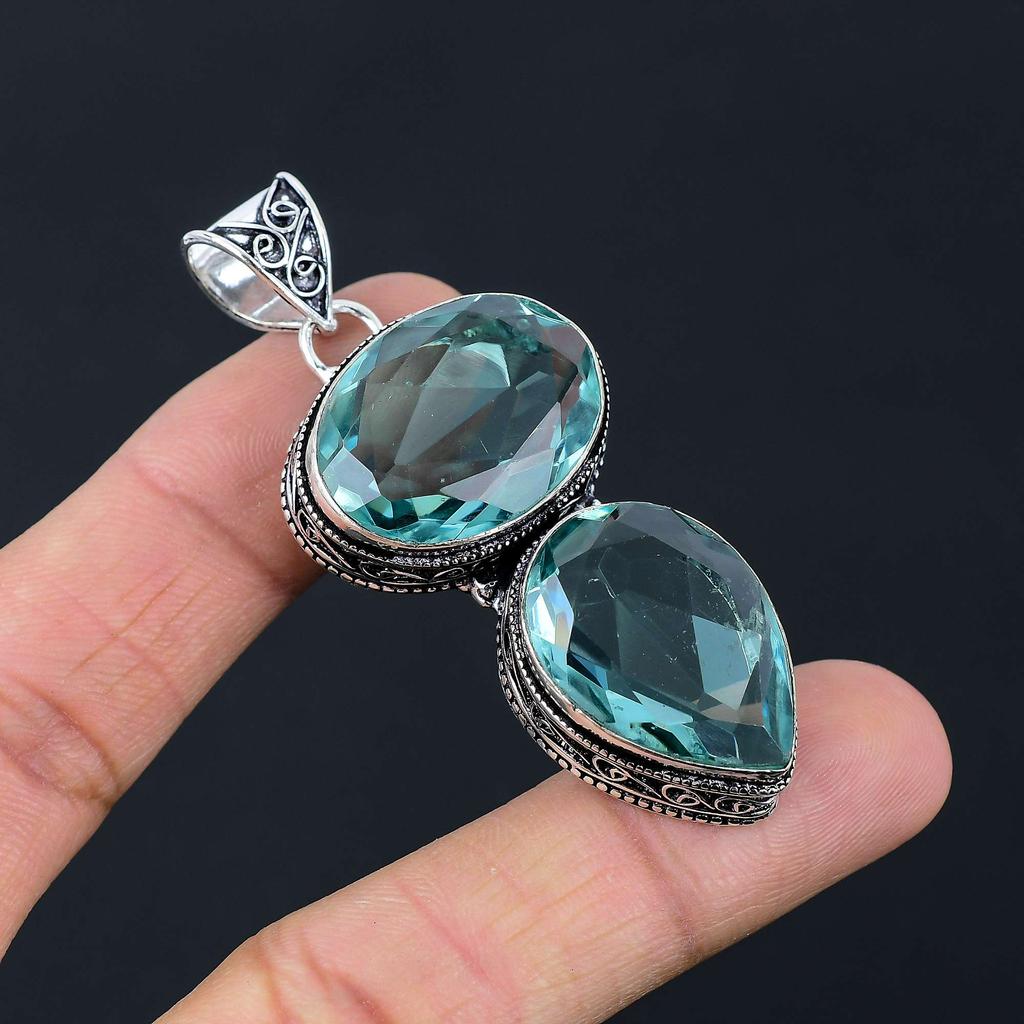 Aquamarine Gemstone Pendant Solid 925 Sterling Silver Pendant Jewelry Gift For Unisex LG-022
