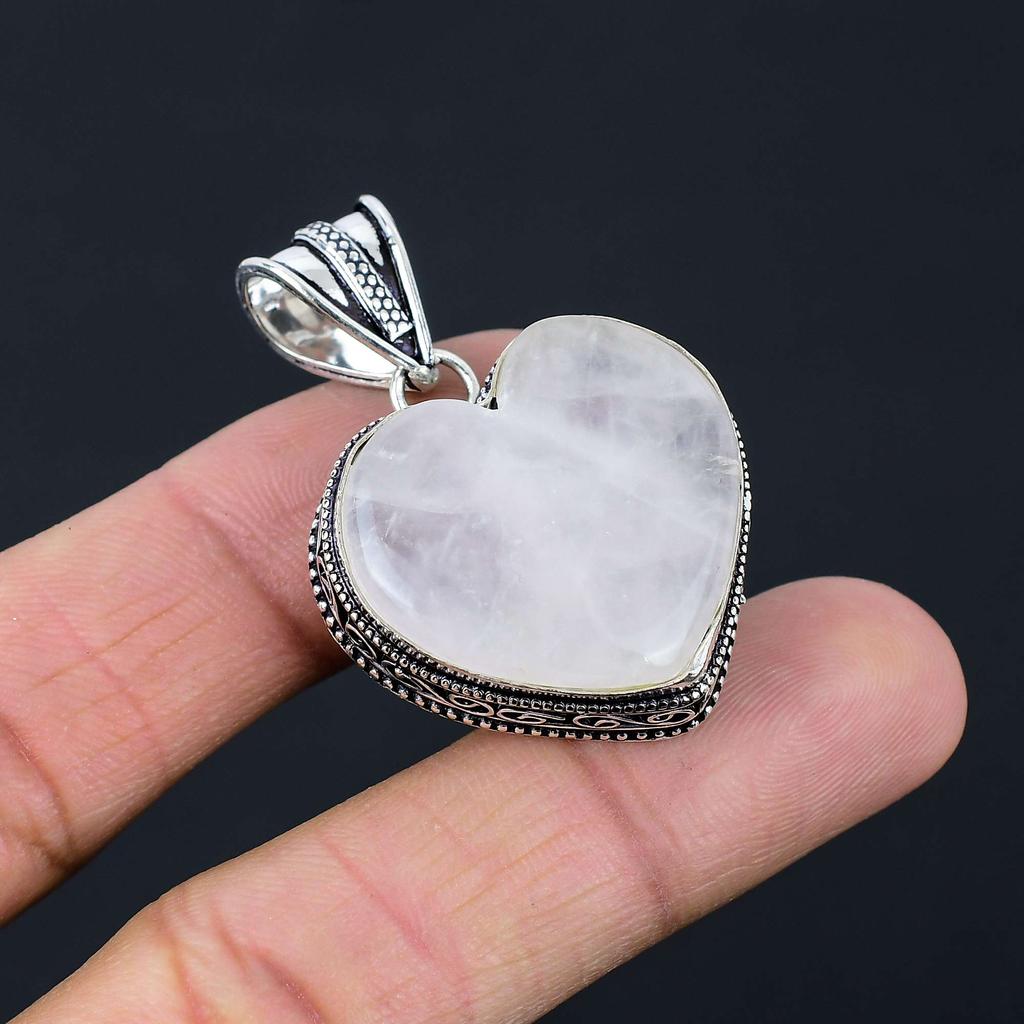 Rose Quartz Gemstone Pendant Solid 925 Sterling Silver Pendant Jewelry Gift For Unisex LG-066