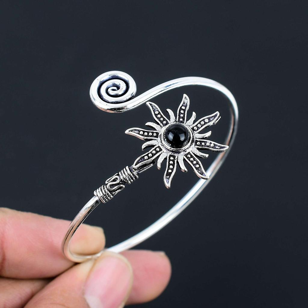 Black Onyx Gemstone Bangles 925 Sterling Silver Bangle Jewelry Gift For Unisex LG-124