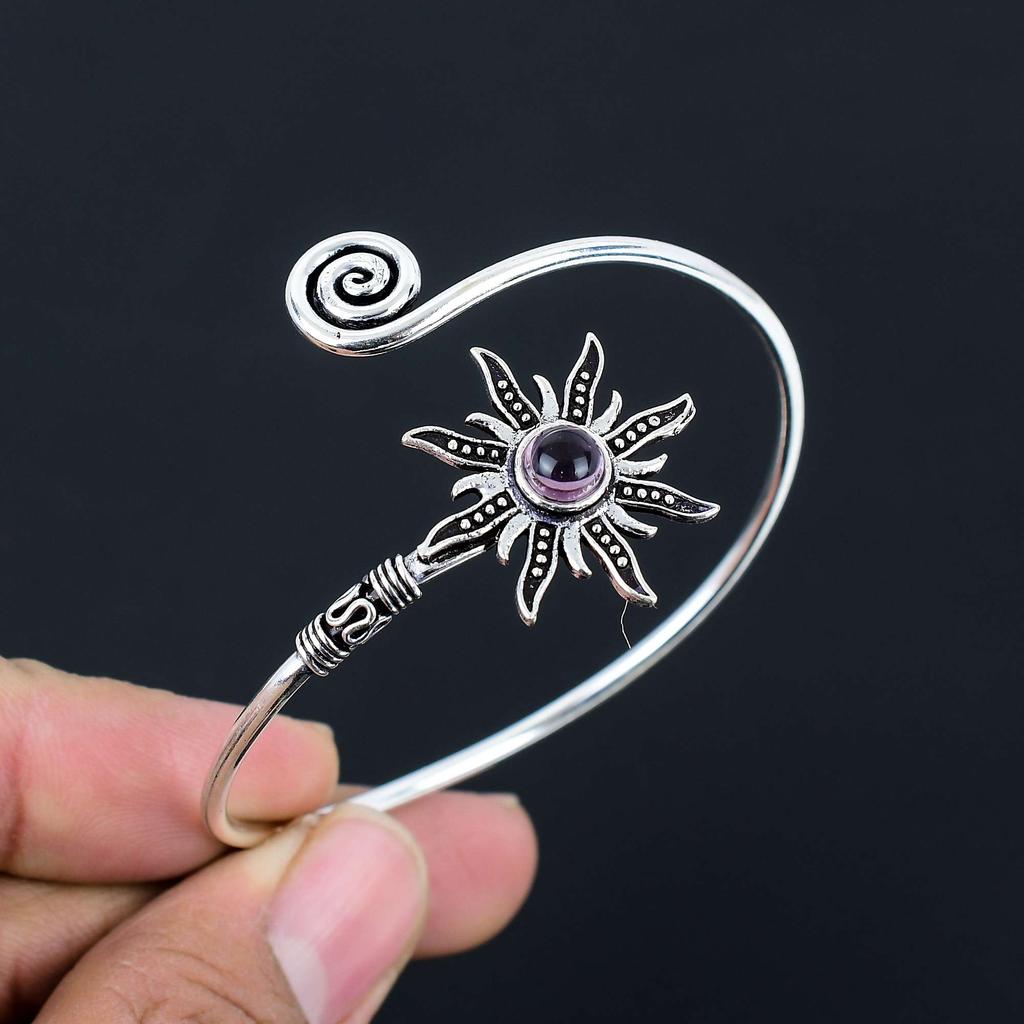 Amethyst Gemstone Bangles 925 Sterling Silver Bangle Jewelry Gift For Unisex LG-125