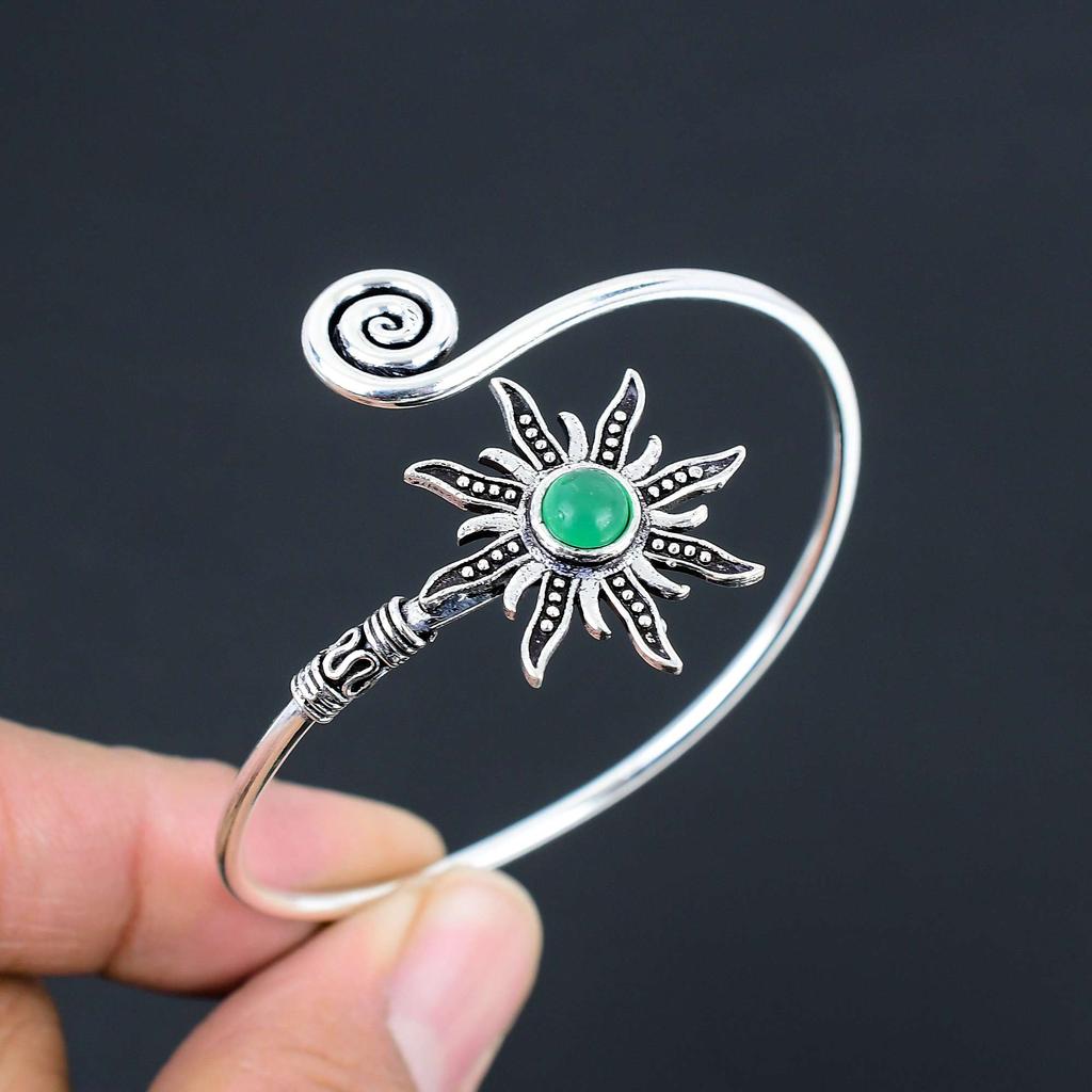 Green Onyx Gemstone Bangles 925 Sterling Silver Bangle Jewelry Gift For Unisex LG-136