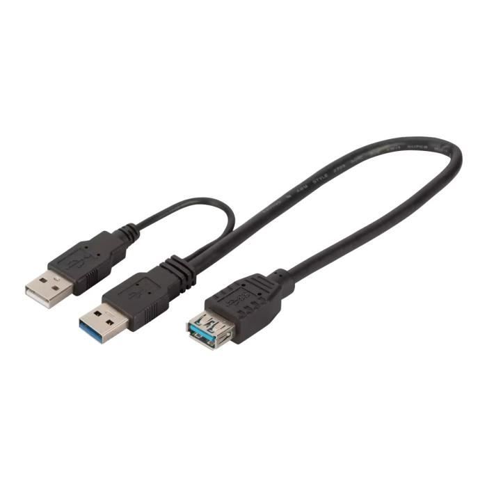 Câble USB DIGITUS - USB Type A (M) vers USB Type A (F) - USB 3.0 - 30 cm - Noir