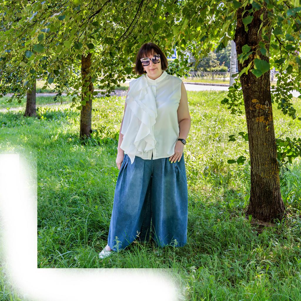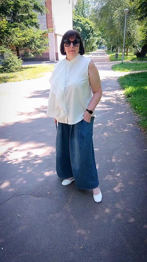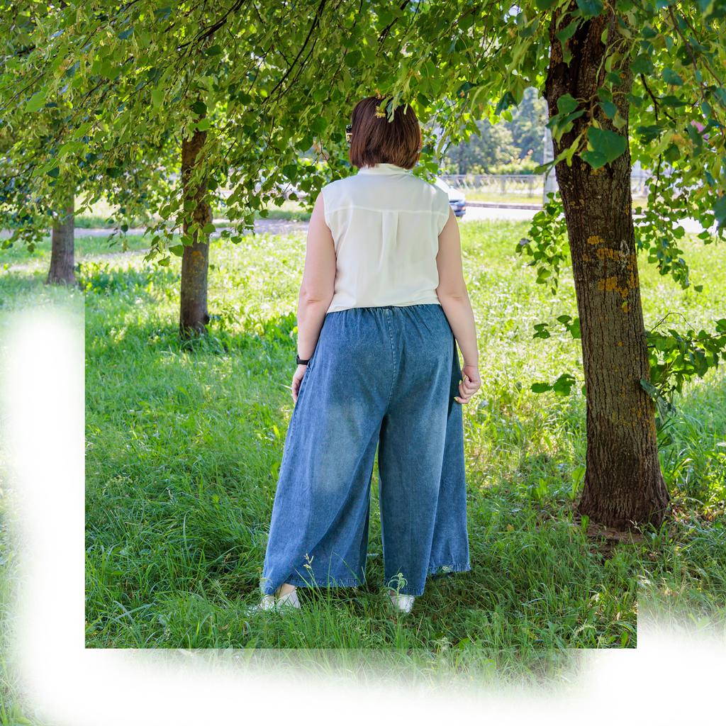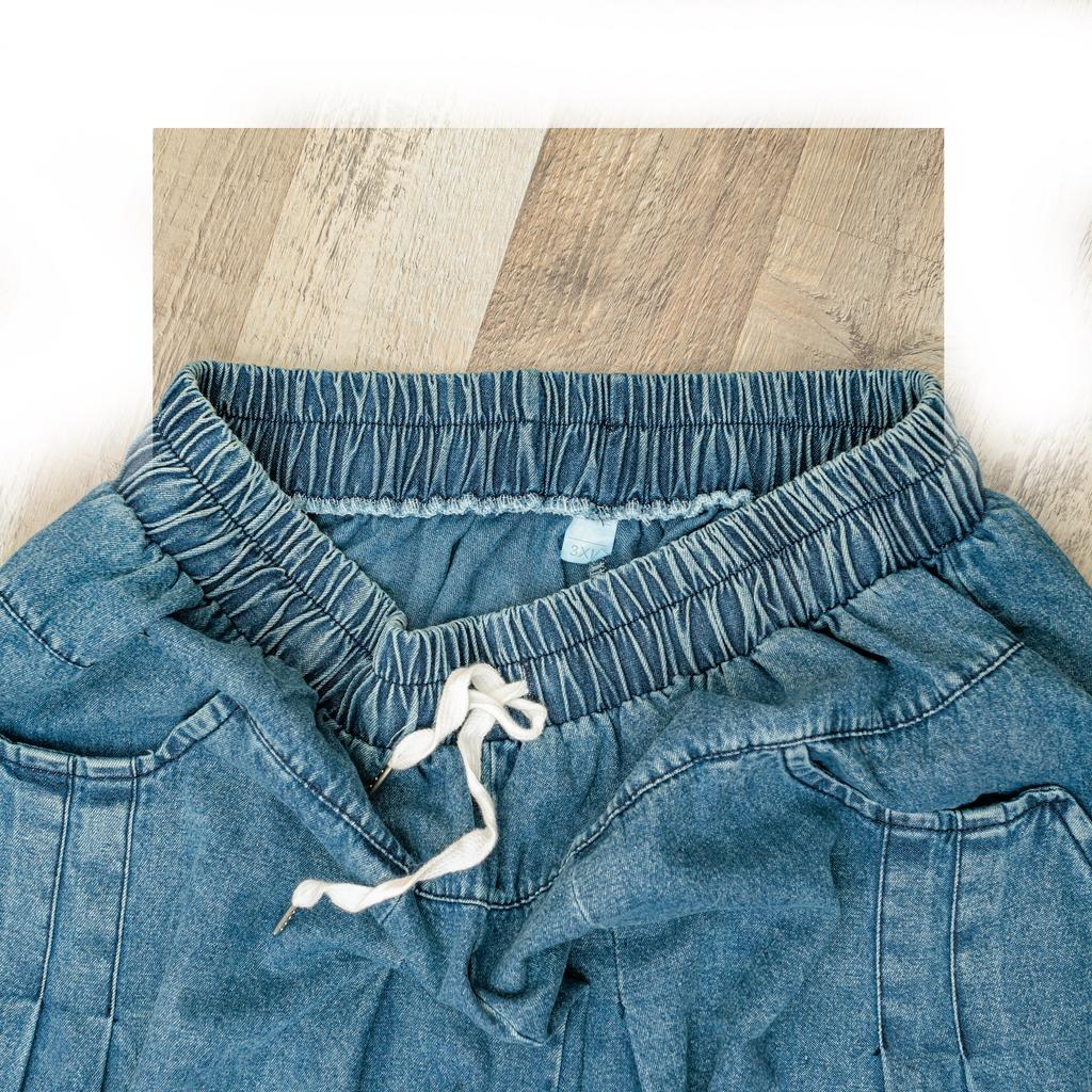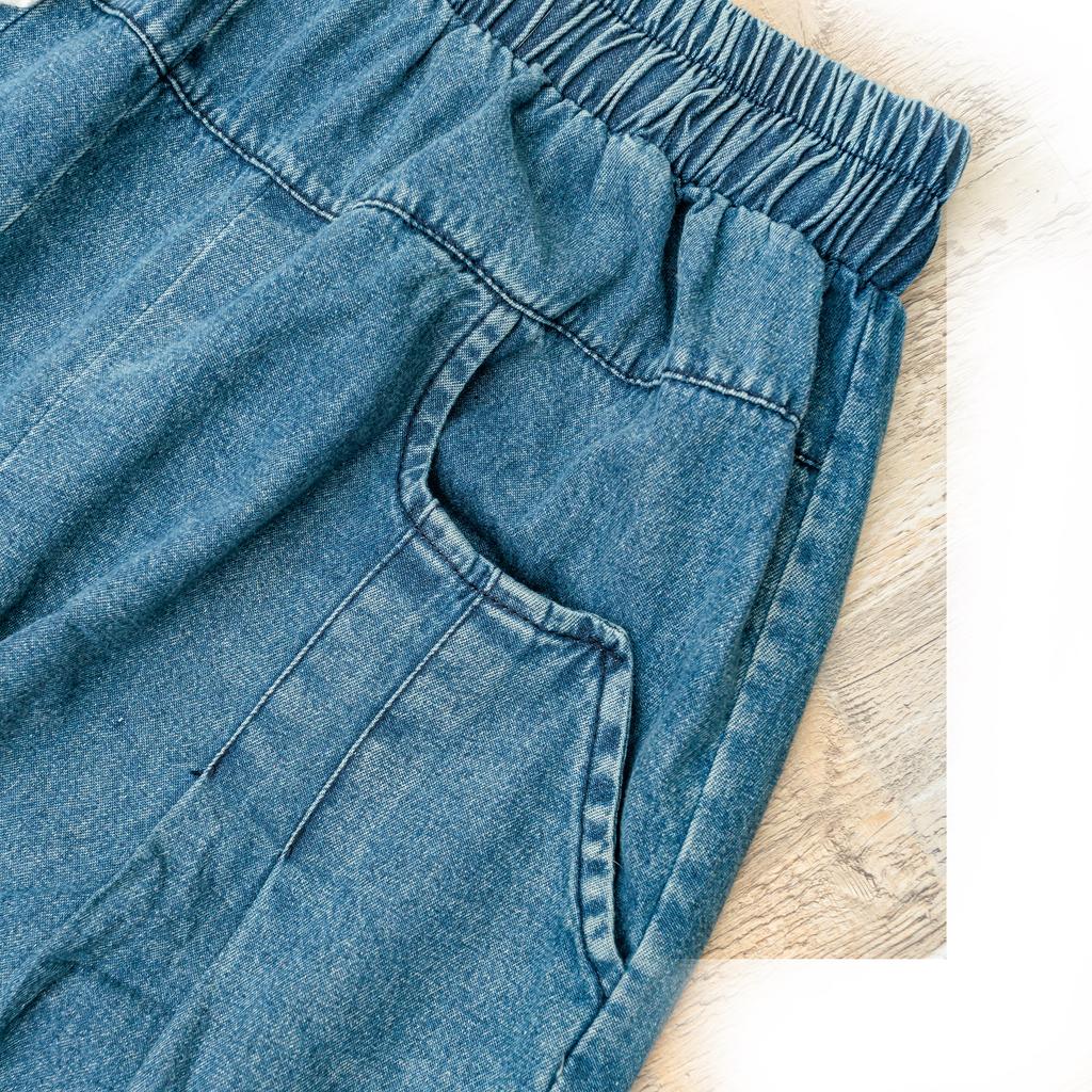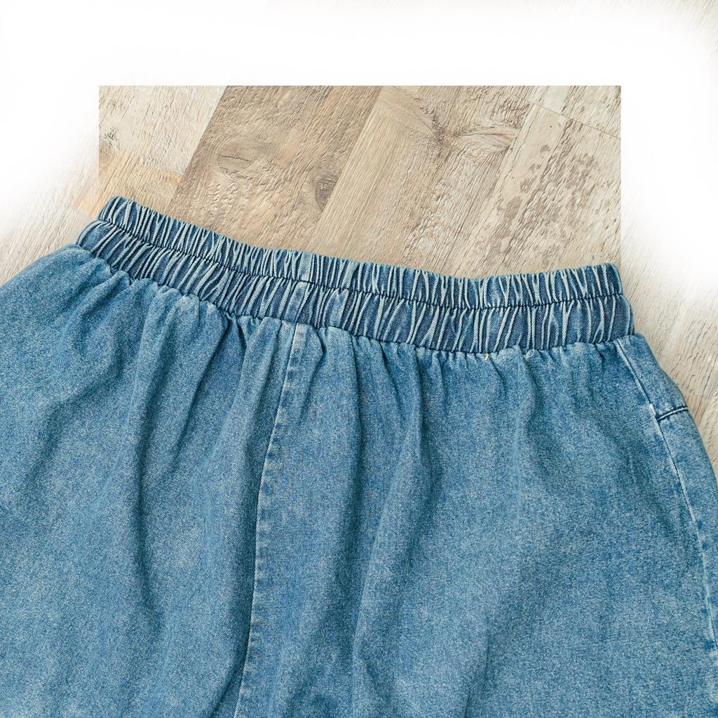 Plus Size Spring Summer Women Blue Jeans Elastic-Waisted Drawstring Wide Leg Denim Trousers Casual Loose Ladies Basic All-Match Jeans