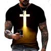 God Bless Vintage Jesus Christ T Shirt For Men 3D Print Men's Oversized Camiseta Short Sleeve Top Tee