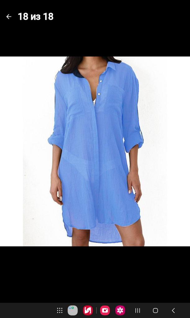 Cotton, but there is a little synthetic. The fabric is thin. I bought it for the beach, over a black swimsuit. My size is 160/110/124, I wear 54-56. I am satisfied with the purchase.