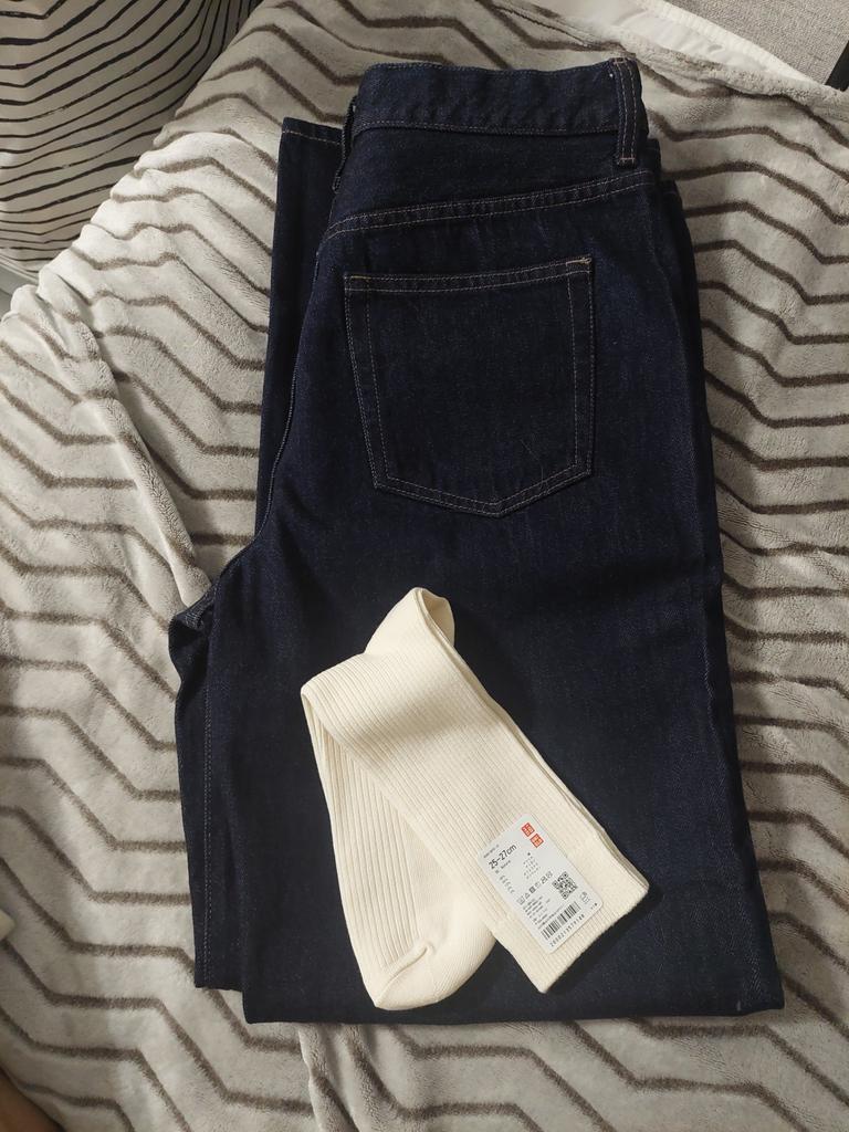 The UNIQLO Japan Wide Straight Jeans feature a slim fit around the waist that transitions to a wide silhouette at the thighs, designed to make legs look slimmer. It is characterized by various colors and a comfortable fit.