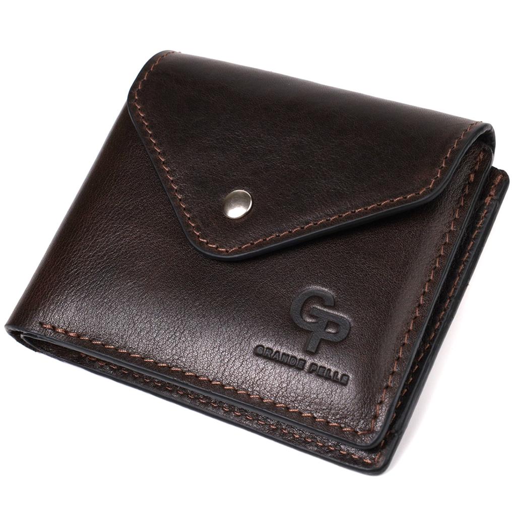 Men's Wallet with Coin Holder Made of Glossy Genuine Leather GRANDE PELLE Wallet 16807 Brown