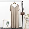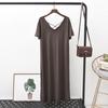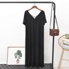 Modal Casual V-neck Dress for Women Summer Backless Cross Tie Short Sleeve Dress Solid Loose Breathable Lightweight Comfortable Plus Long Dress