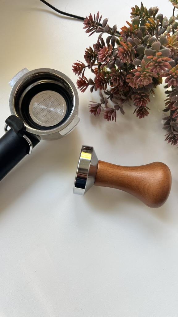 49/51/53/58mm Solid Wood Pressing Powder Hammer Stainless Steel Solid Pressing Powder Flat Bottom Coffee Powder Filler